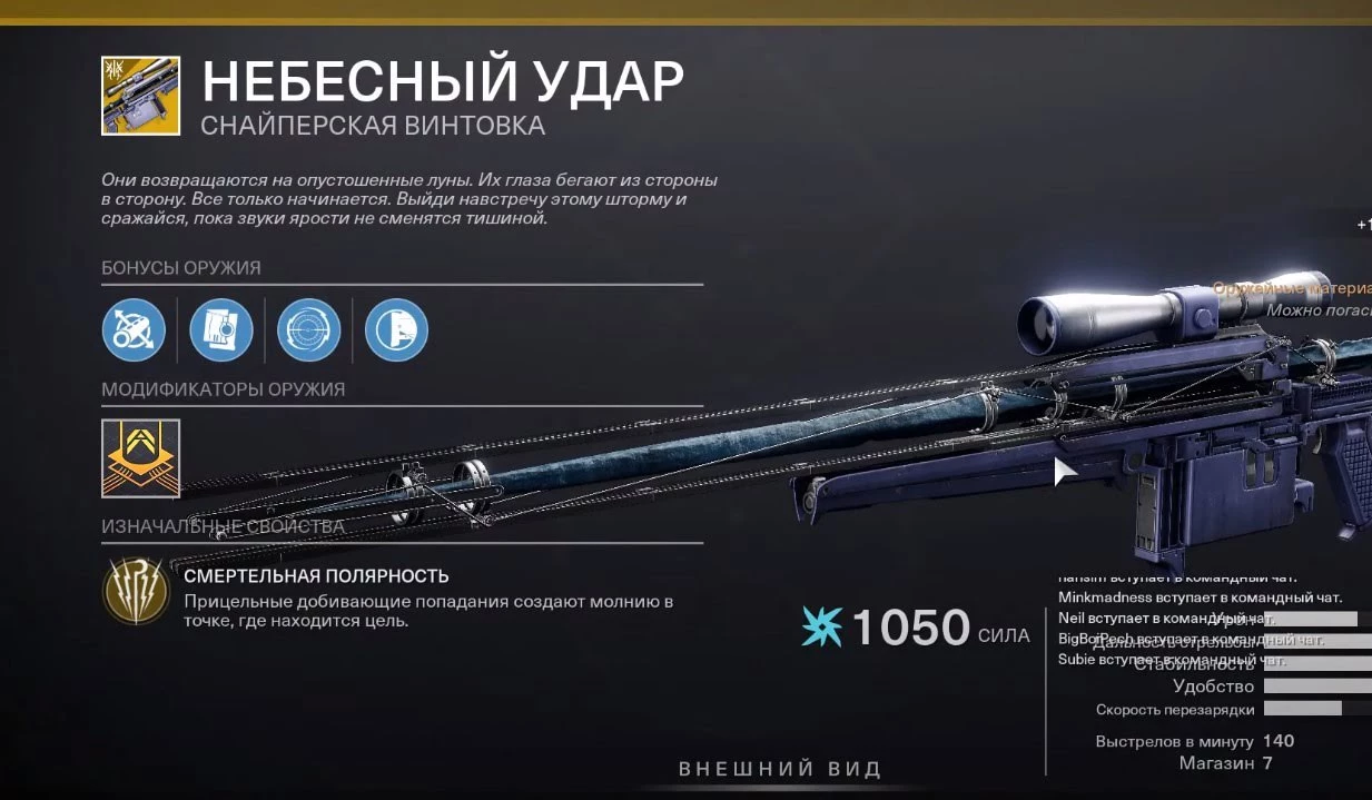 Вам нужно дождаться конца миссии, прежде чем вы узнаете, упала ли вам винтовка. Когда мы получили Небесный удар, оставалось всего около 6 секунд до того, как нас отправили обратно. Поэтому не стоит переживать, если вы сразу же не получили оружие.