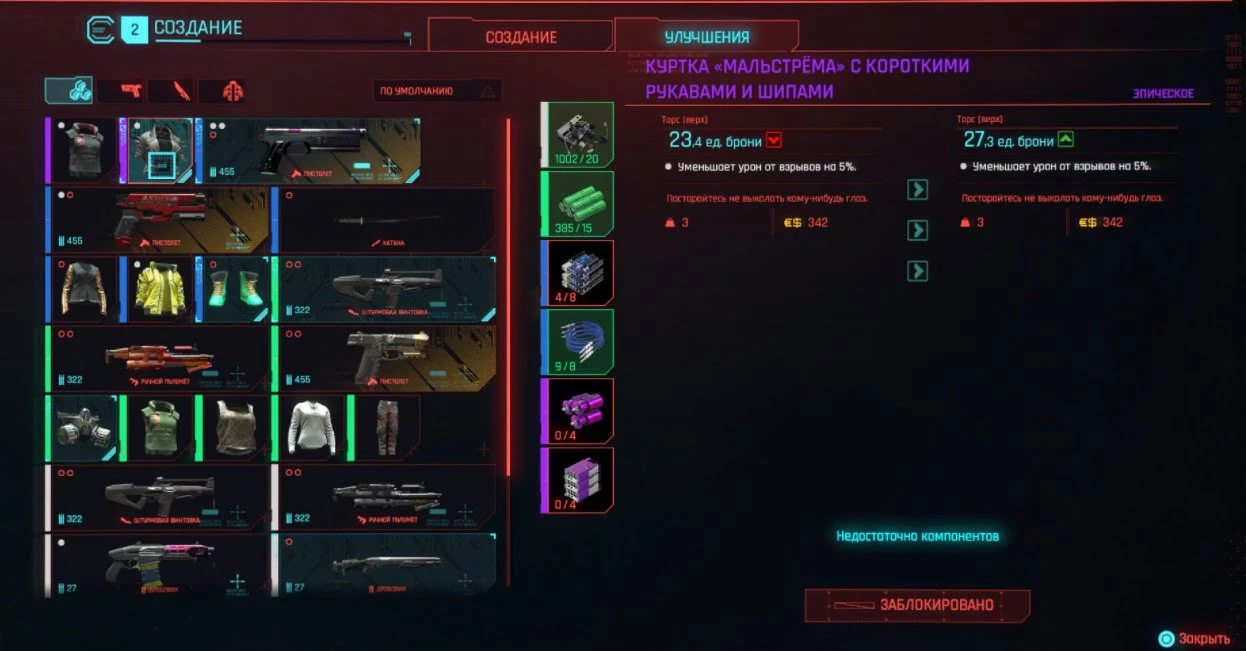 В мире киберпанка Вы можете улучшать и прокачивать не только навыки, характеристики, и способности Вашего персонажа, но и его оружие, а также снаряжение! Разработчики говорили о том, что при желании, Вы сможете полноценно пройти игру, не испытывая дискомфорта, с понравившимся Вам вооружением, просто подгоняя его под свой уровень, и улучшая его параметры. Так давайте же выясним, как улучшить свое оружие, и что для этого нужно! Итак, приступим: