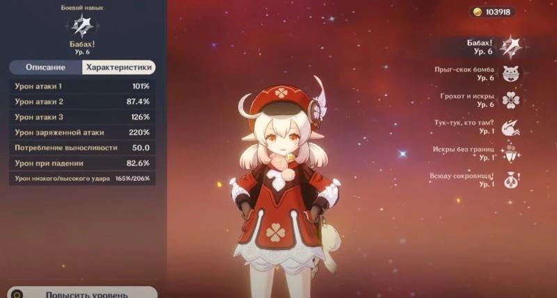 Начальные перки Кли прекрасны и являются хорошим дополнением к базовым атакам и умениям, однако именно таланты «Взрывоопасно» и «Пламенный восторг» открывают истинную силу данного персонажа. К сожалению, разблокировать их крайне трудно, так как получение талантов зависит лишь от везения игрока.