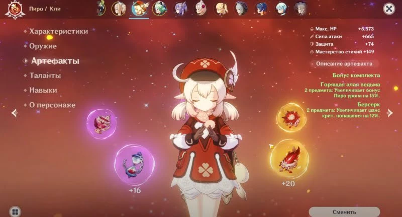 Здесь у вас снова появляется выбор. Вы можете использовать Кли в качестве второстепенного дамагера, просто применив ее способности, а затем возвратившись к основному DPS, или продолжать играть за нее для проведения множества обычных и заряженных атак. В обоих случаях вам могут помочь следующие сеты артефактов: