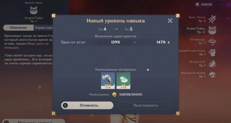 - Уровень 3 – Жарка в масле: Повышает уровень Огневихря на 3. Максимальный уровень улучшения 15.