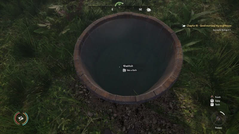 Рекомендуем вам также не начинать разговор, если от вас сильно воняет, то есть нужно вначале помыться. Посмотреть на уровень чистоплотности своего героя можно в разделе параметров (Character Parameters). Для мытья используйте бадью, которую можно разместить на любом удобном для вас участке.
