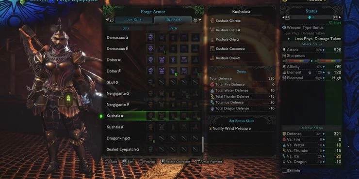 Этот комплект доспехов исходит от монстра Кушала Даора, который находится в Ущелье Старейшин и Древнем лесу. Это отличное дополнение к любой конструкции с двумя лезвиями, и его сила проявляется при столкновении с водными или ледяными монстрами.