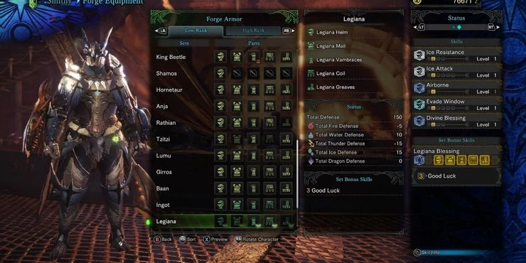 Это еще один комплект брони, который отлично подходит для построения дальнего боя, особенно при столкновении с ледяными и водными монстрами. У него есть набор бонусов, который дает вам шанс увеличить ваши награды за квесты, и все, что вам нужно сделать, это выследить монстра Легианы в Коралловом нагорье, Гнилой долине, Инейном пределе или Путеводных землях.