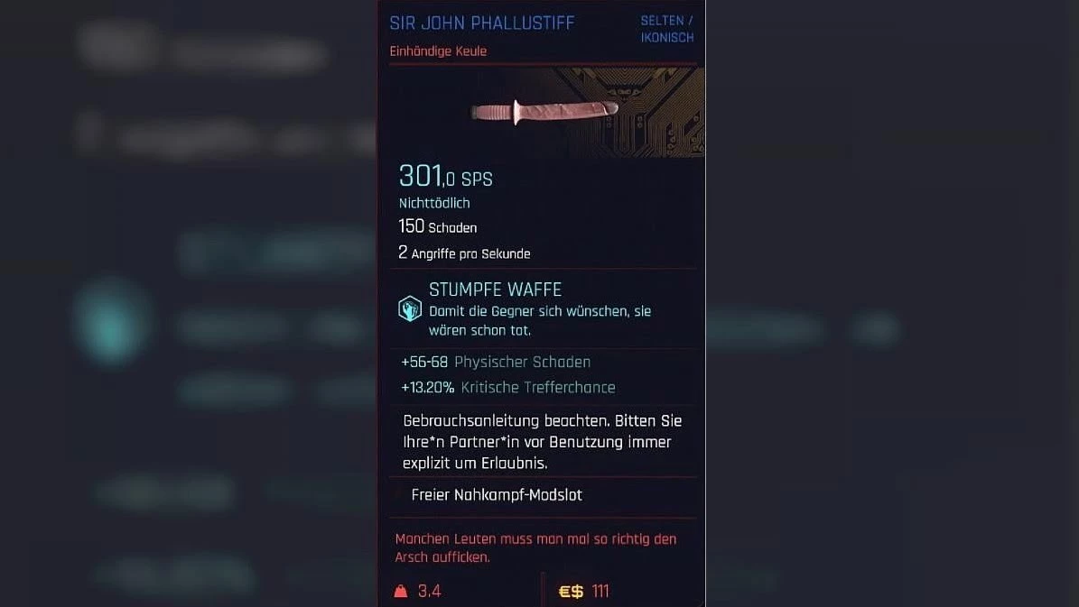 И начнем мы пожалуй с самой неординарной дубинки - фаллоимитатор "Встанислав Шишкин", который помимо своего прямого назначения, превосходно показывает себя в бою, и обладает весьма хорошими характеристиками! Дубинка наносит не летальный урон, и что самое приятное, она может оставаться актуальной до конца игры, ведь ее можно прокачивать! Вы найдете это оружие в отеле, на встрече с Мередит Стаут, так что рекомендуем Вам ее не пропускать.