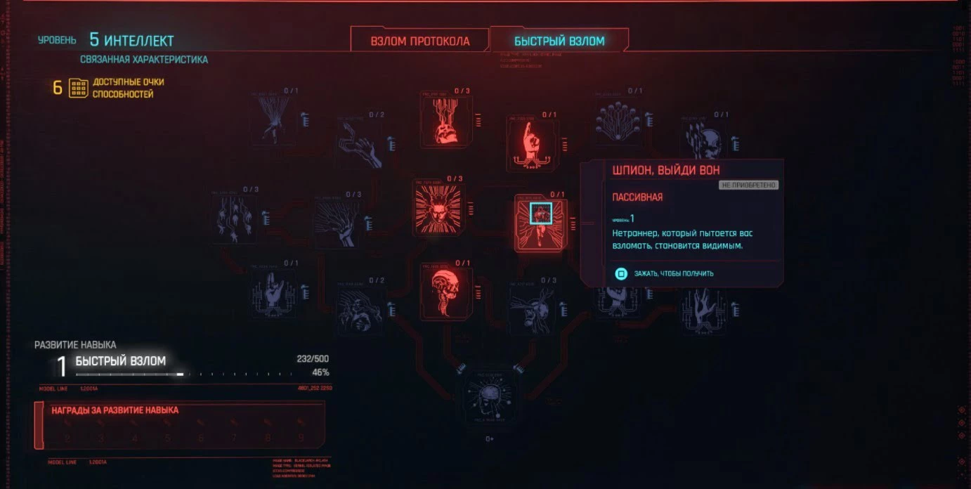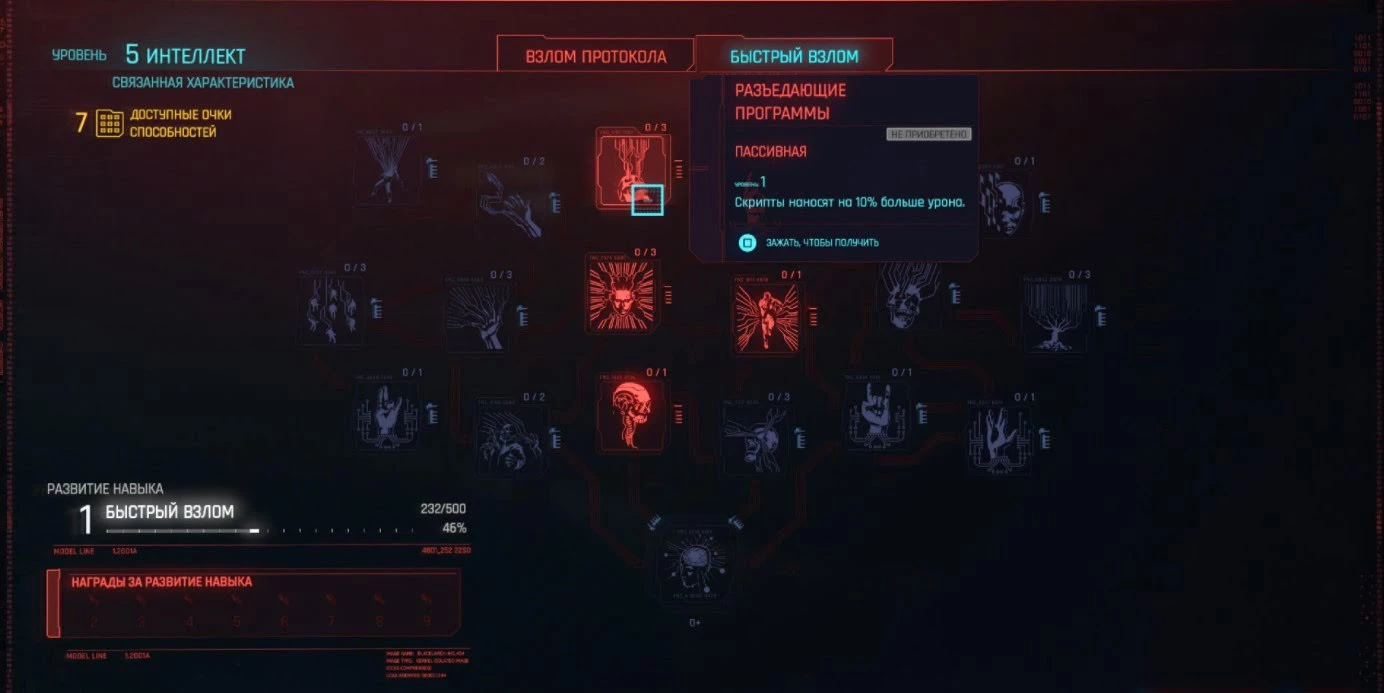Единственная характеристика, которая вам действительно нужна для того, чтобы стать нетраннером, — это интеллект, поскольку подавляющее большинство способностей, влияющих на скрипты, находится внутри нее. Кроме того, интеллект пассивно увеличивает вашу память, урон и продолжительность скриптов. Остальные очки лучше пустить на еще одно дерево способностей, которое вращается вокруг оружия, в идеале — на дальнобойное, поскольку в бою вам лучше держаться на расстоянии.
