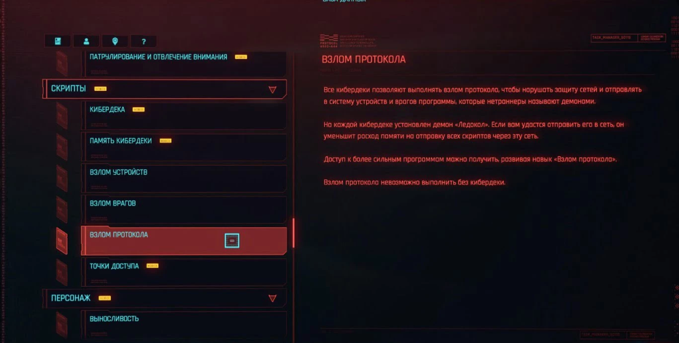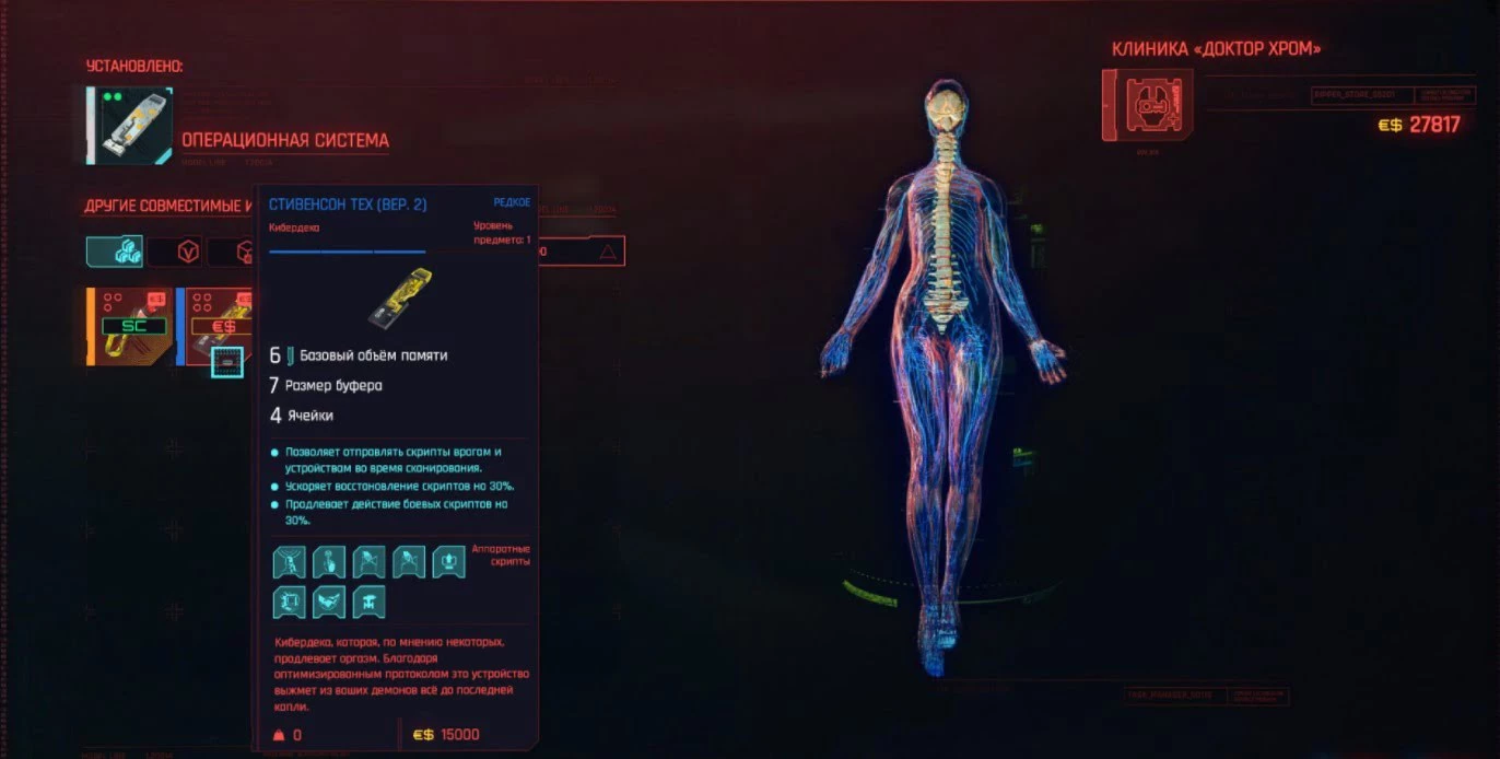 Скрипты — это способности, которые можно загрузить в вашу кибердеку. Все кибердеки разные, некоторые позволяют вставлять в них больше скриптов, некоторые дают специальные бонусы или имеют большей объем памяти.