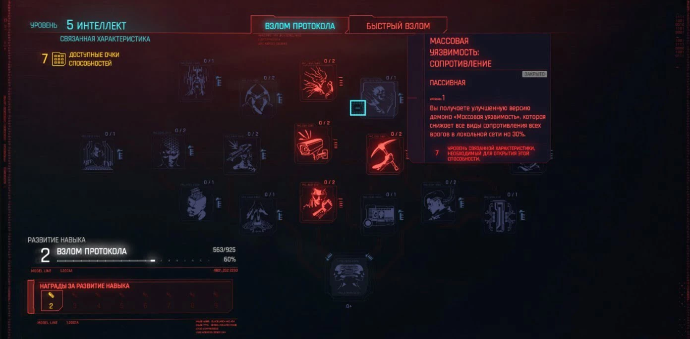 В мире Cyberpunk 2077 технологии — это оружие. Игроков, которые хотят заниматься взломом, называют нетраннерами — они должны сосредоточиться на увеличении интеллекта. Чем больше показатель характеристики «Интеллект», тем больший объем памяти кибердеки вам доступен для использования хакерских навыков. Думайте о памяти кибердеки как о мане в ролевых играх. Чем больше у вас памяти, тем больше навыков взлома вы сможете использовать.
