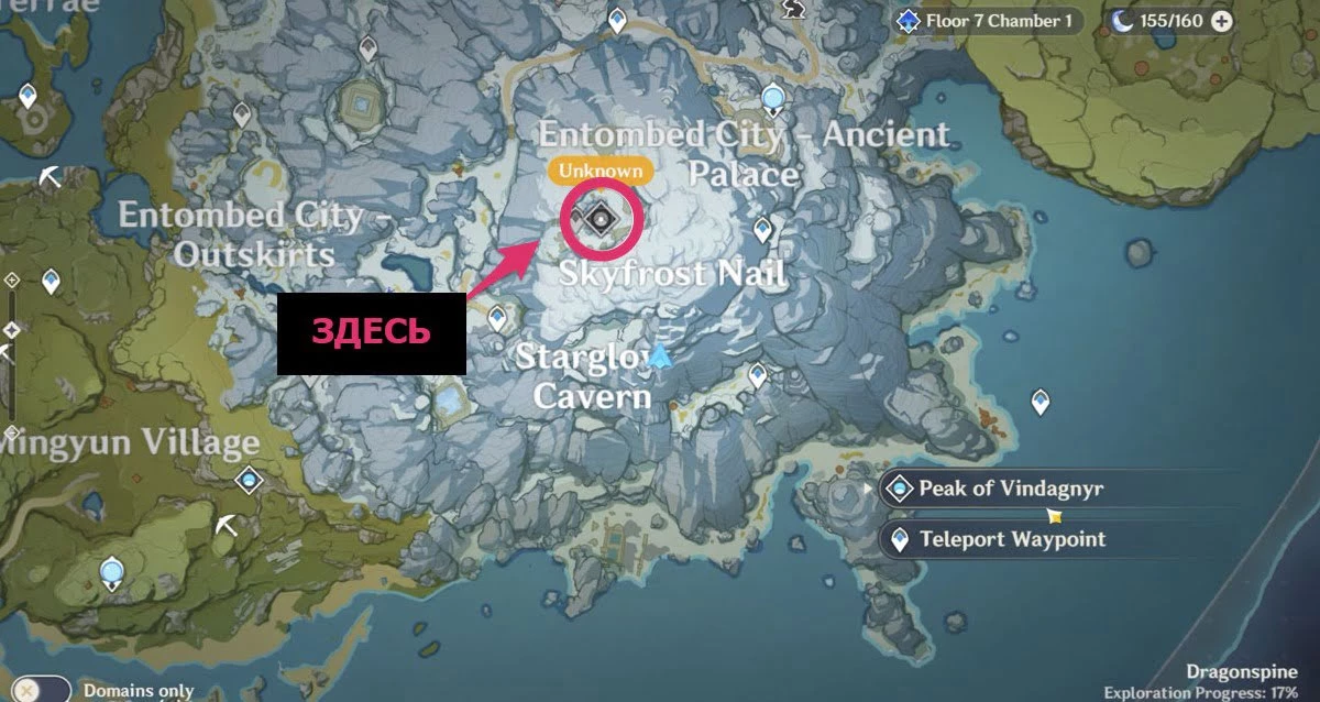 Вход в данную область можно найти в локации под названием Шип небесной стужи, расположенной на вершине Драконьего хребта. На карте ниже показано точно расположение подземелья.
