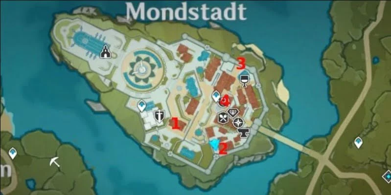 Расположение плакатов и досок объявлений в Мондштадте: