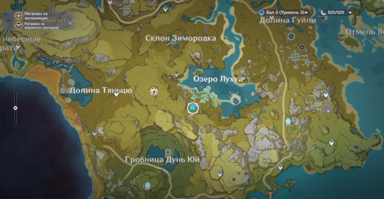 Отыскать самого Вермеера можно на западном берегу Озера Лухуа, на небольшом отдалении от местного телепорта. Он стоит прямо перед двумя гигантскими статуями воинов и переключателем, который пока нельзя активировать. На скриншотах ниже показано его точное расположение.