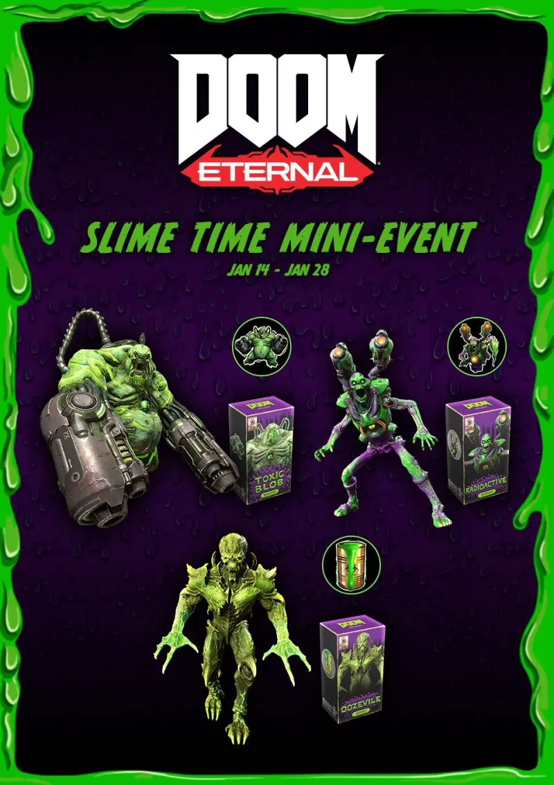 Последнее внутриигровое событие DOOM Eternal покрыто завистью… нет, погоди, это смертельно ядовитый осадок. Выбери защитные костюмы, потому что ВРЕМЯ СЛИЗЫ iiiiiiit .