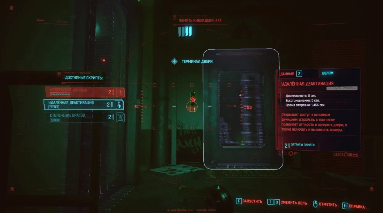 Вы также можете попробовать попросту взломать кодовый замок двери, выбрав удаленную деактивацию. Для этого потребуются 2 единицы ОЗУ.