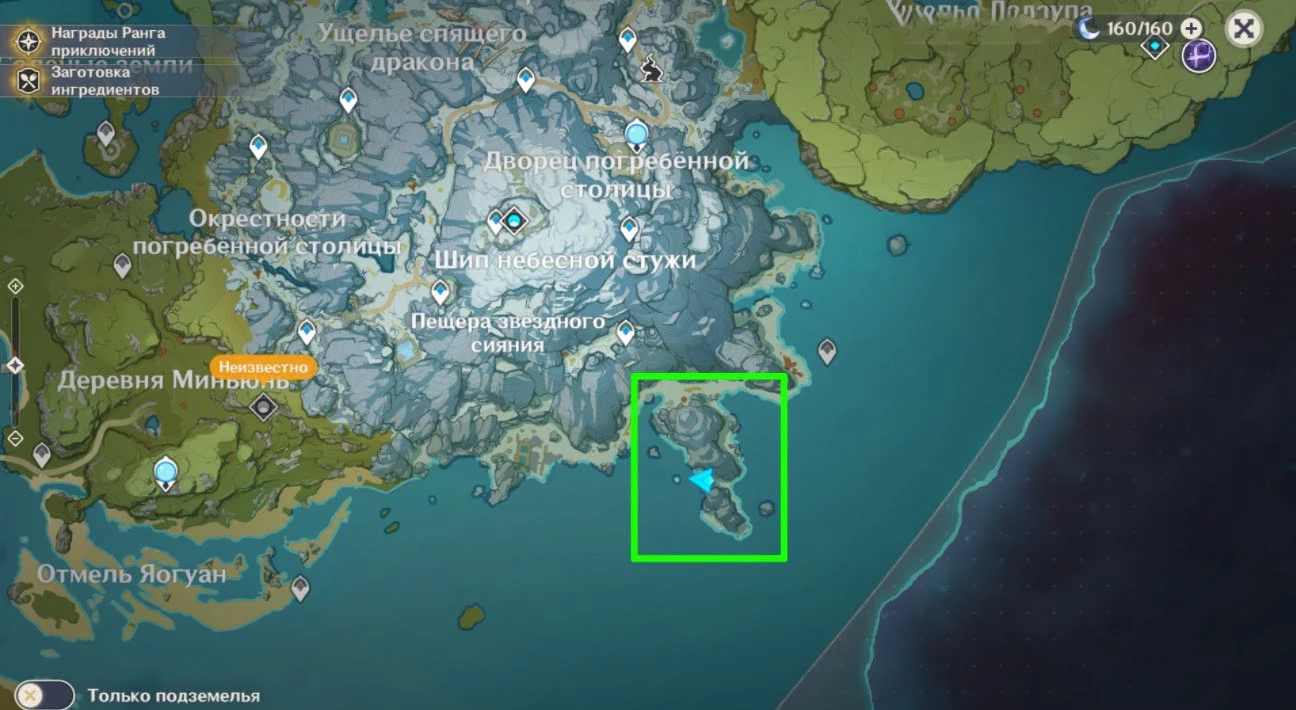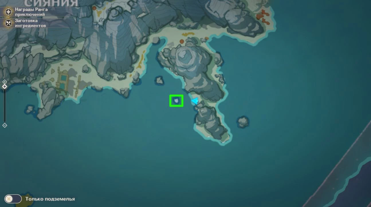 Для начала, как мы уже сказали, Вам предстоит отправится на южное побережье Драконьего хребта, к маленькому архипелагу, что находится там. Как ориентир можете использовать статую семи Архонтов, ну или просто посмотрите на скриншот выше, именно в эту, отмеченную локацию Вам и нужно! Когда доберетесь до нужного места - ищите бутылки с записками, всего их три штуки, и расположение каждой мы указали на скриншотах ниже.