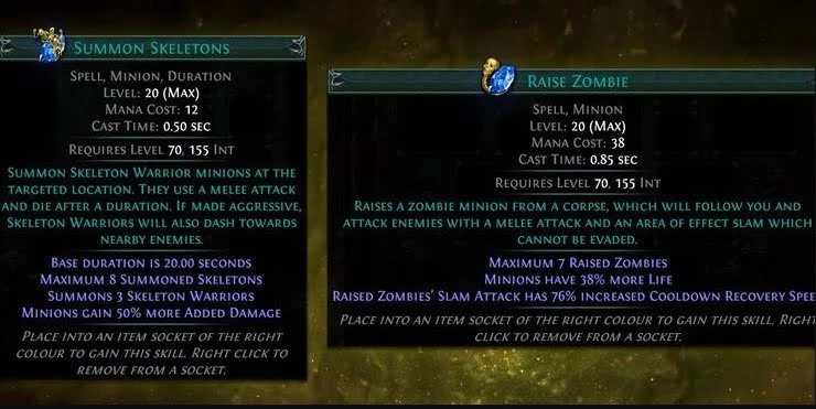 Навыки в Path of Exile предоставляются вашим снаряжением, а не выбранным вами классом. Почти каждое умение обеспечивается Камнем умений, небольшим предметом, который можно вставить в оружие, доспехи и определенные украшения. Если вы соответствуете требованиям к атрибуту и уровню камня навыков, вы можете его надеть.