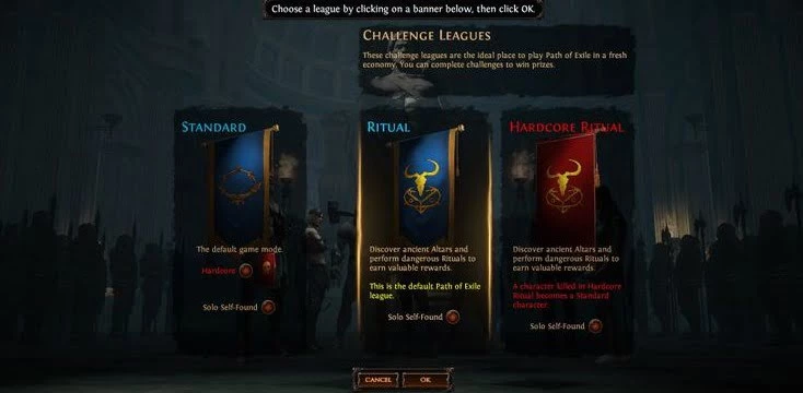 - Хардкорная лига: похожа на лигу, но если вы умрете, ваш персонаж переходит в стандартную лигу.