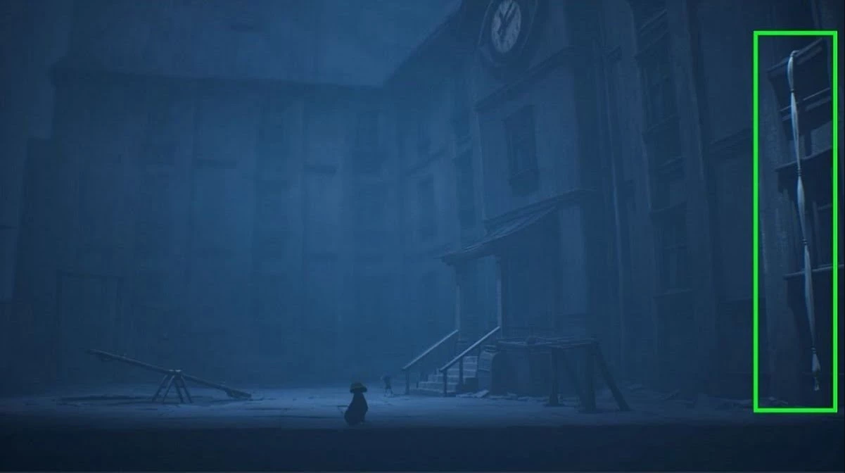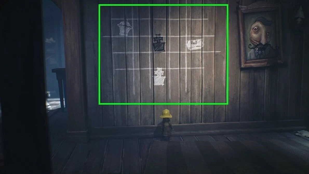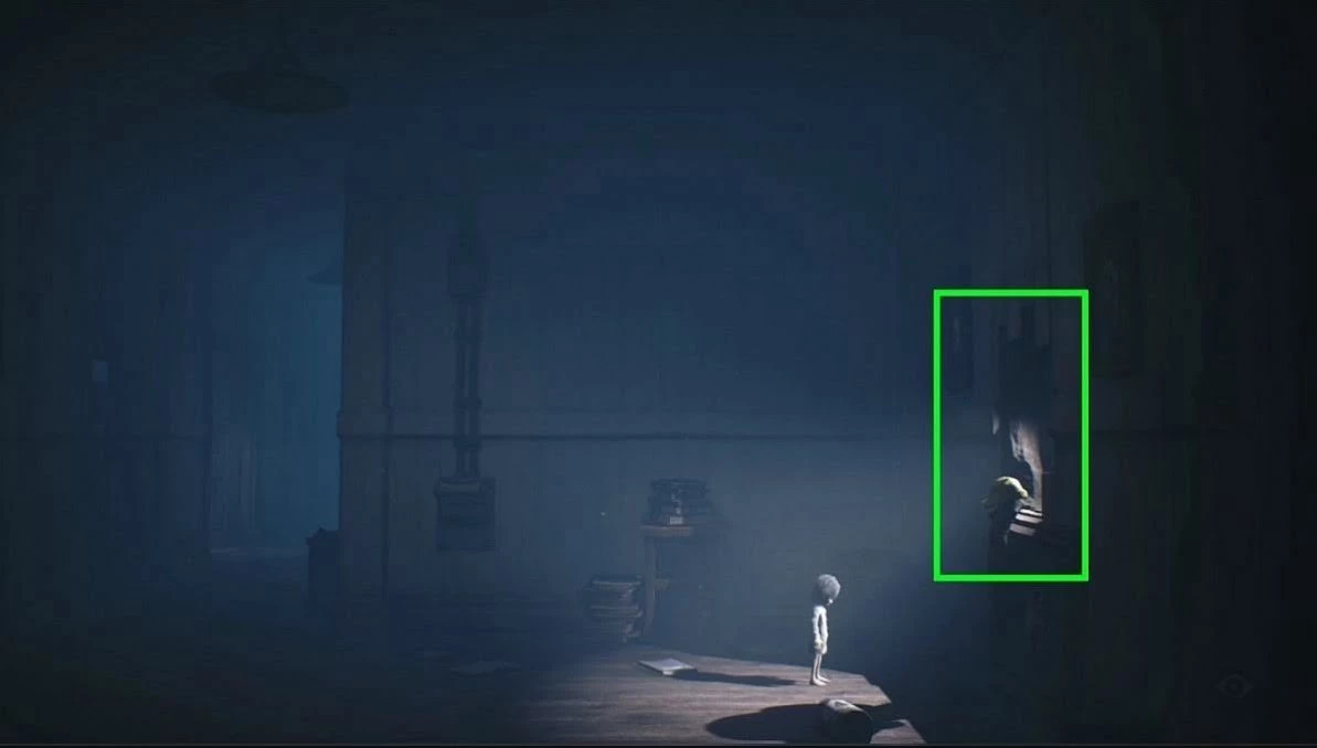 Забравшись в первое школьное помещение, вы можете найти рычаг в правой части комнаты, картину на стене и комнату с игрушками. Чтобы решить эту загадку и найти выход, достаточно использовать рычаг и посмотреть на картину на стене справа. Из отверстия в картине будут просачиваться лучи света. Снова используйте рубильник и осмотрите игровую комнату. Возьмите любую игрушку (кубик или мячик), вернитесь к портрету и бросайте предмет в него. Картина упадёт, а вы сможете продолжить путь.