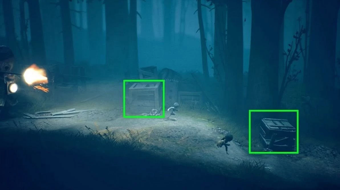 Вы также столкнётесь с этой проблемой позже, почти под конец уровня. Два ворона засели на деревянном ящике. Если вы начнёте бежать к ним, то охотник сразу убьет вас. Вам нужно подойти как можно ближе к воде и в приседе подкрасться к воронам. Когда они взлетят, вы уже будете находиться в укрытии.