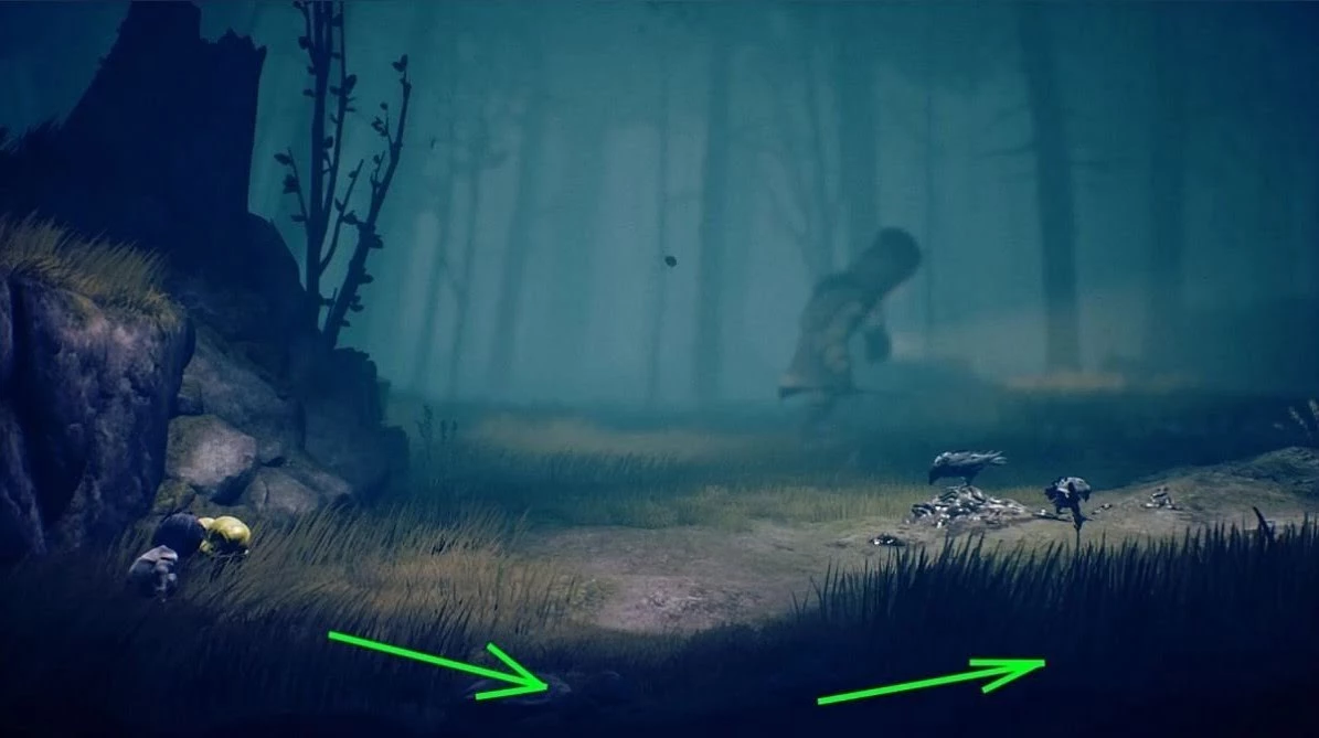 Ещё одной проблемой во время побега от охотника могут стать вороны. Когда вы приблизитесь к птицам, они взлетят, тем самым привлекая внимание охотника. Если в этот момент вы находитесь в густой траве, то перестаньте двигаться и не шевелитесь до тех пор, пока босс не отвернётся.