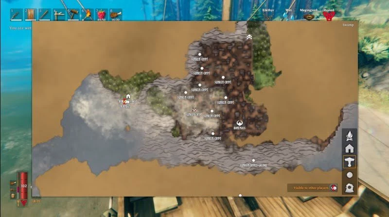 Как и в случае с другими боссами, для добавления расположения Массы костей на карту необходимо для начала взаимодействовать с правильным вегвизирем. Этот рунический камень можно найти на Болоте – довольно часто он спавнится в башнях Драугров. Особое внимание обратите на башенки с внутренней лестницей, так как на их балконах обычно спавнится нужная вам каменная табличка.