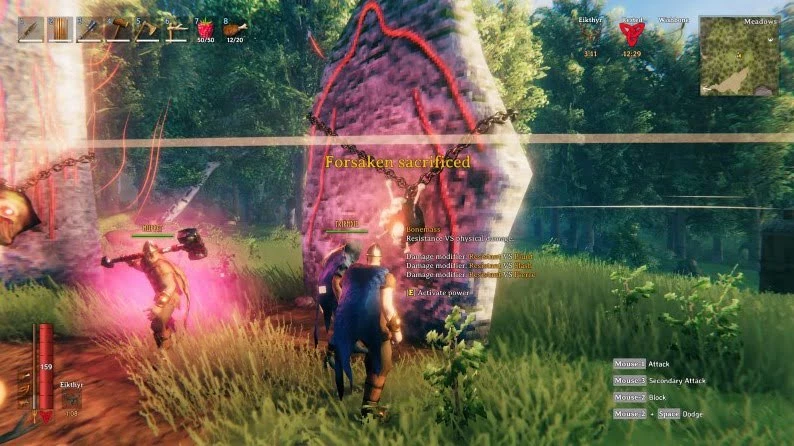 Итак, имея на руках подходящее оружие, а также выпив медовуху и съев немного еды, можете смело призывать Массу костей. Бой с ним трудно назвать элегантным. Единственный способ нанести ему урон – это встать прямо перед его лицом и начать размахивать булавой. Если у вас в команде несколько человек, то ударяйте его по очереди, бегая вокруг него и вызывая агрессию на себя. Активируйте забытую силу Эйктюра, чтобы меньше расходовать выносливость во время бега.