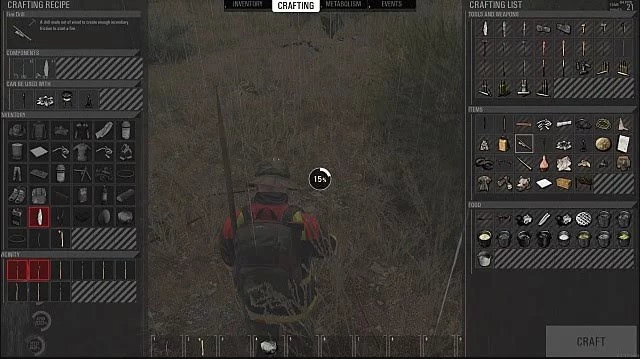 Имея на руках копье и нож, вы сможете подумать над тем, как бы разжечь огонь. Чтобы создать нужный инструмент, воспользуйтесь каменный ножом и двумя длинными палками.