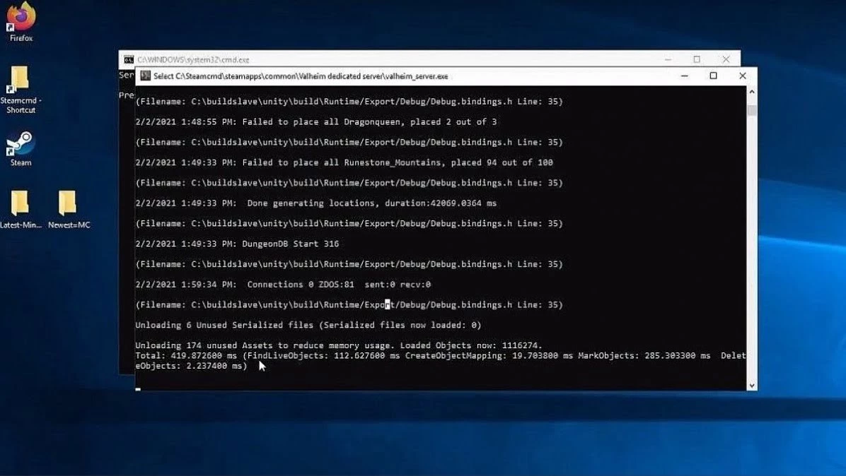 Убедитесь, что порты с 2456 по 2458 открыты в брандмауэре вашего маршрутизатора и компьютера. Теперь вы можете запустить сервер с помощью файла «valheim_server.exe». Сервер готов, когда он показывает «игровой сервер подключён». Чтобы правильно закрыть сервер, в открытой командной строке введите любую клавишу.
