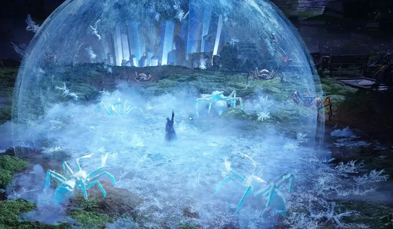 Используйте ледяные клыки (только в PvE), чтобы заморозить врагов на своем пути, а если этого недостаточно, высвободите высшую силу холода с помощью Frost Shackles, чтобы мгновенно заключить всех врагов вокруг вас в ледяную тюрьму.