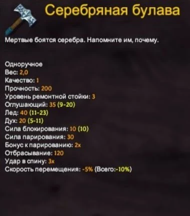 В базовом состоянии этот клинок даже лучше более продвинутого варианта из черного металла – все благодаря его дополнительному урону духом. Плюс, для его изготовления необходима кузница лишь 3-го уровня.