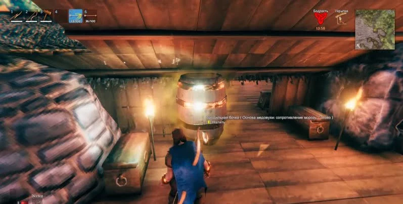 Теперь, когда у Вас имеется бродильная бочка, поговорим о том, как же собственно изготовить медовуху! Для начала, Вам необходимо построить котел, который необходимо разместить над костром, а для этого понадобятся слитки олова. Затем, в котле необходимо сделать основу будущего напитка, в игре есть достаточно большое разнообразие напитков, как и эффектов от них, так что выбирайте нужный Вам, и варите. А теперь, когда у Вас есть основа, Вам необходимо поместить ее в бродильную бочку, чтобы она там настоялась пару дней, и уже после этого, Вы сможете насладится вкусной медовухой! Процесс изготовления эликсиров и зелий происходит аналогичным образом.