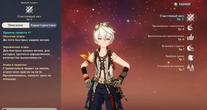 Открыв талант 1-го уровня «Мечты о приключениях», вы сможете повышать силу атаки персонажей «Волнительным приключением», даже если их показатель HP ниже 70%.