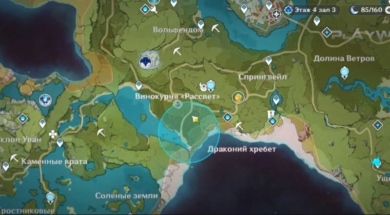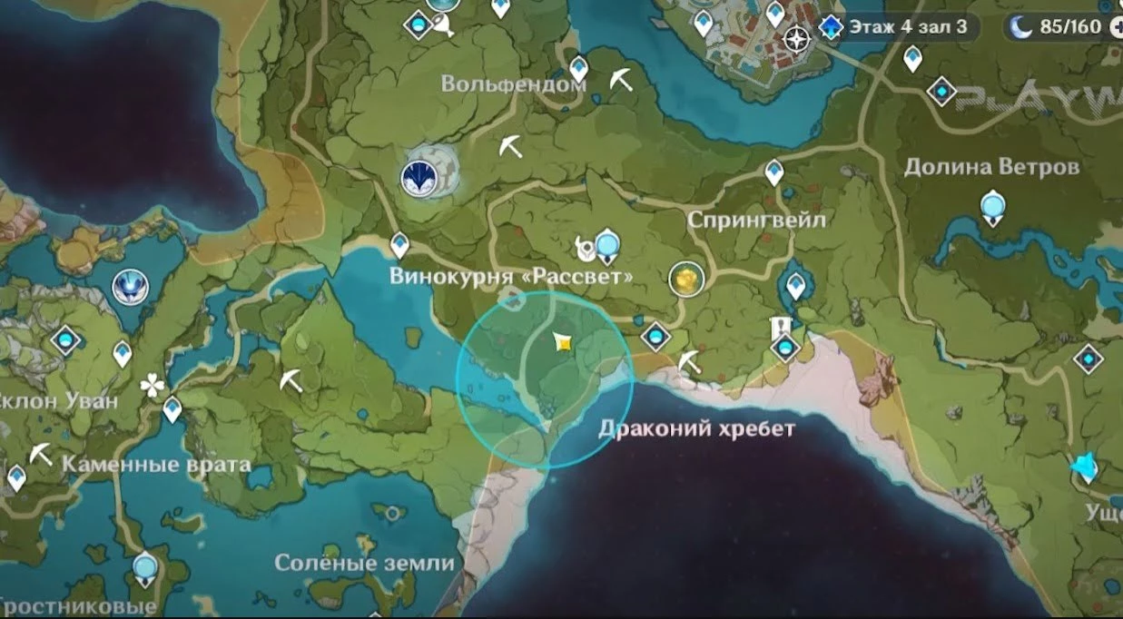 Идите к месту, на которое она указывает. Затем возникнет звездочка, а синий круг исчезнет. Эта иконка показывает точные координаты нужного вам предмета. Если камень не найдет анемокулы ни в одном из ближайших районов, то его заряд не будет израсходован. В ином случае он исчезнет, и вам нужно будет создать еще один «компас».