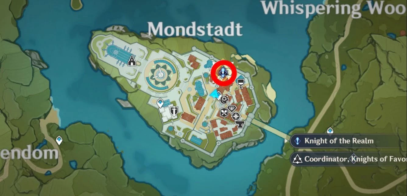 Первым делом вам нужно будет открыть чертеж данного инструмента. Сделать это можно путем достижения 2-го уровня репутации в городе Мондштадт. Вы сможете начать получать репутационные очки после получения 25-го ранга приключений. Поговорите с рыцарем Гертой, чтобы узнать больше информации об этом. На скриншотах ниже показано ее расположение.