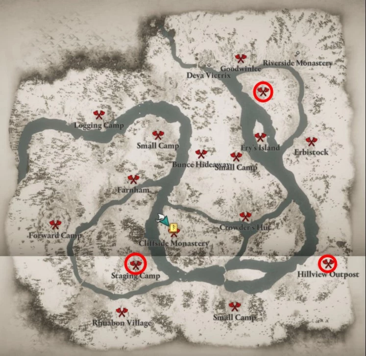 Есть несколько областей на реке Северн, в которых с большой вероятностью может заспавнится сундук с этим элементом брони. Вам следует отправиться в Восточные укрепления, Островной лагерь, Заставу на Севере или Лагерь в низинах. Карта с нужными объектами показана на скриншоте выше.
