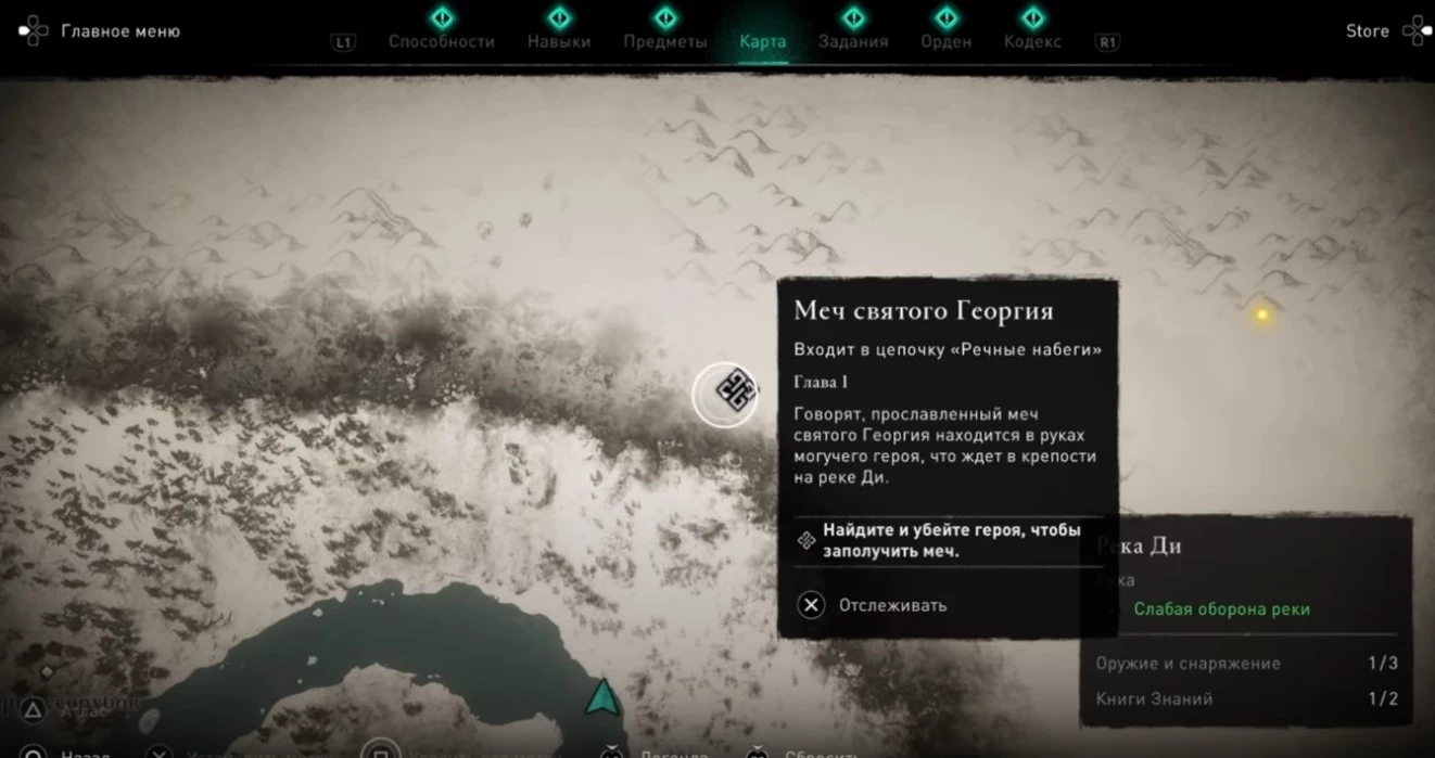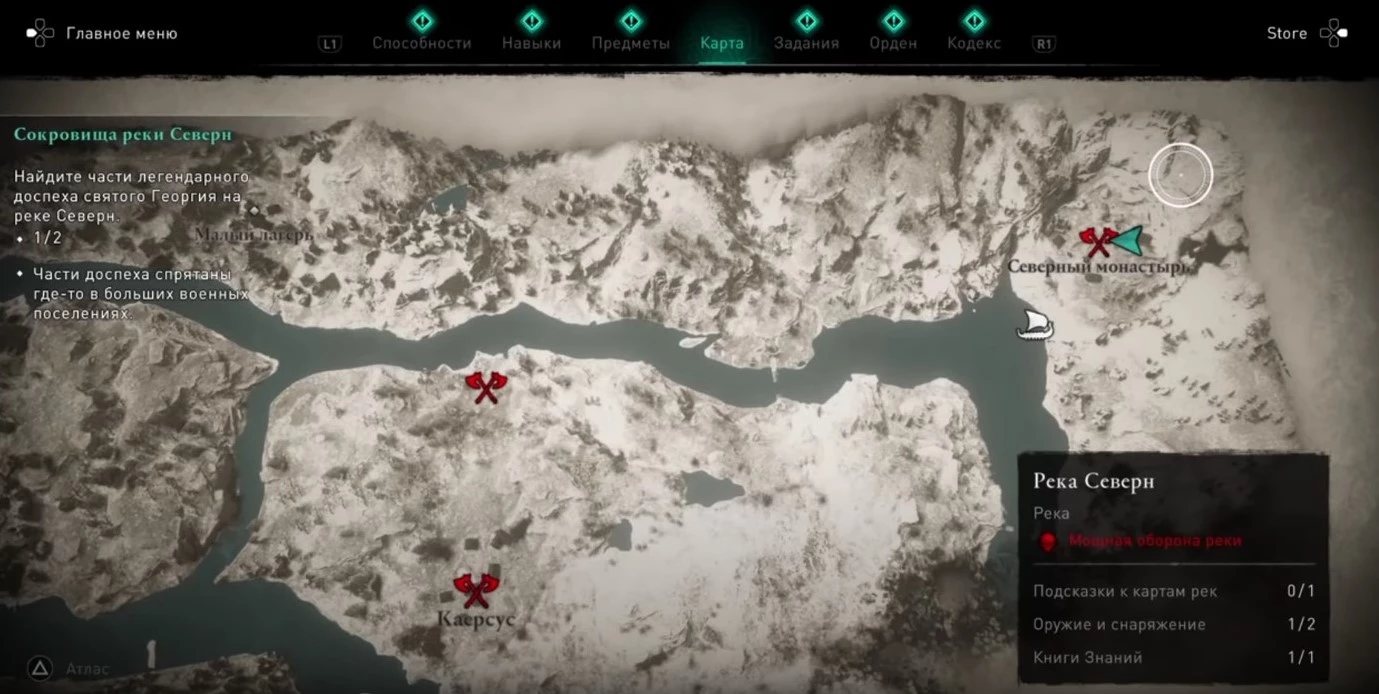 Доступ к третьему речному набегу (на реке Ди) открывается только после того, как вы соберете две подсказки в рамках миссии «Наследство святого Георгия». Речь идет о специальных предметах, спрятанных в двух монастырях, расположенных в окрестностях рек Северн и Экс.