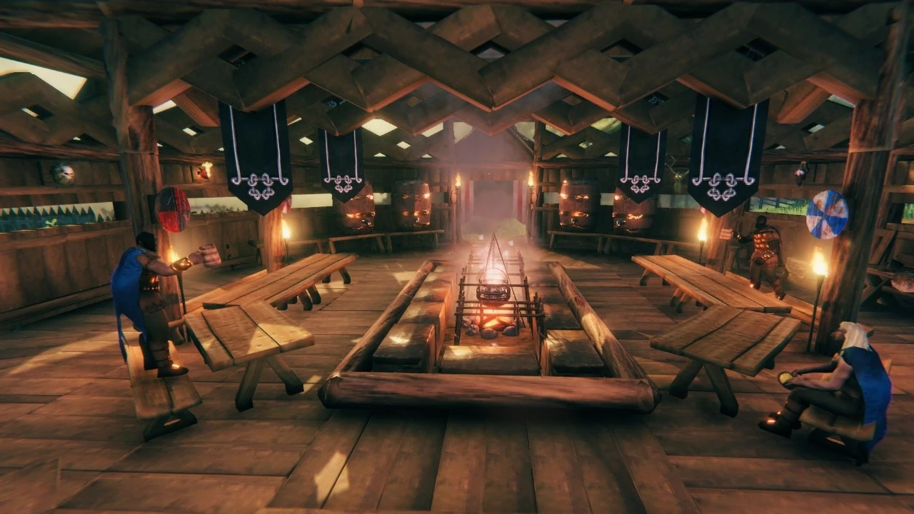 Еда и напитки в Valheim имеют важное значение в выживании, восстанавливая здоровье и выносливость. В игре есть разные виды еды: та, которую можно собрать, добыть охотой или приготовить. С первыми двумя всё просто: на лугах и в лесу можно найти грибы, ягоды и животных и просто собрать или убить. А вот с готовкой не всё так просто, ведь есть такие сложные блюда, как сосиски или джем. Для того, чтобы открыть их рецепты, нужно изготовить котёл. Также можно просто пожарить мясо, для этого нужны стойка для готовки и костёр.