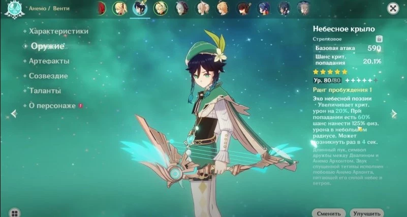 Венти в Genshin Impact: Лучшие билды и прокачка!