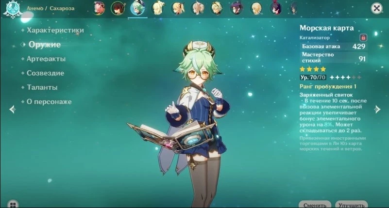 В Genshin Impact Сахароза является 4-звездочным персонажем, которая в бою использует катализатор и относится к Анемо типу. В отряде она может выполнять функцию второстепенного дамагера с уклоном в поддержку. В данном гайде вы узнаете про ее лучшие билды, оружие и артефакты. Мы также расскажем, с какими героями ее можно сочетать.