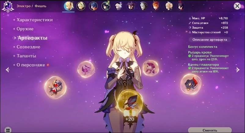 В Genshin Impact Фишль представляет собой 4-звездочного персонажа, который в бою использует лук и Электро навыки. В отряде она в основном играет роль второстепенного дамагера, однако из нее можно также сделать неплохого основного бойца. Наш гайд позволит вам узнать про лучшие билды, оружие и артефакты для данной героини.