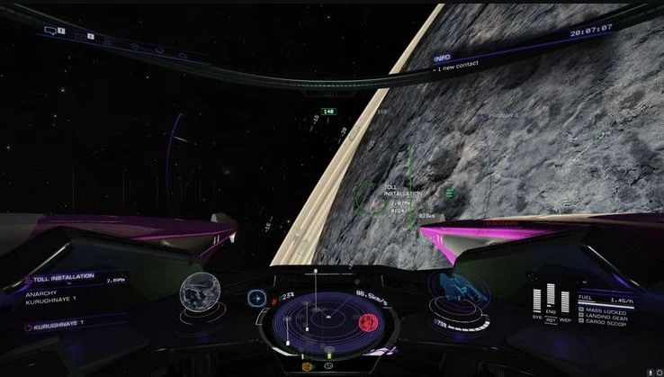 Чем выше сила тяжести, тем больше тяги требуется для удержания корабля в неподвижном состоянии. К счастью, Flight Assist справится с этим. Остерегайтесь, гравитация заставляет корабль управлять медленнее, и для выполнения маневров потребуется больше времени, чем обычно. С планетами с более высокой гравитацией и кораблями, перевозящими значительный груз, слишком большой нисходящий импульс может стать невозможным для контроля. Не забывайте, командир; Космос неумолим.