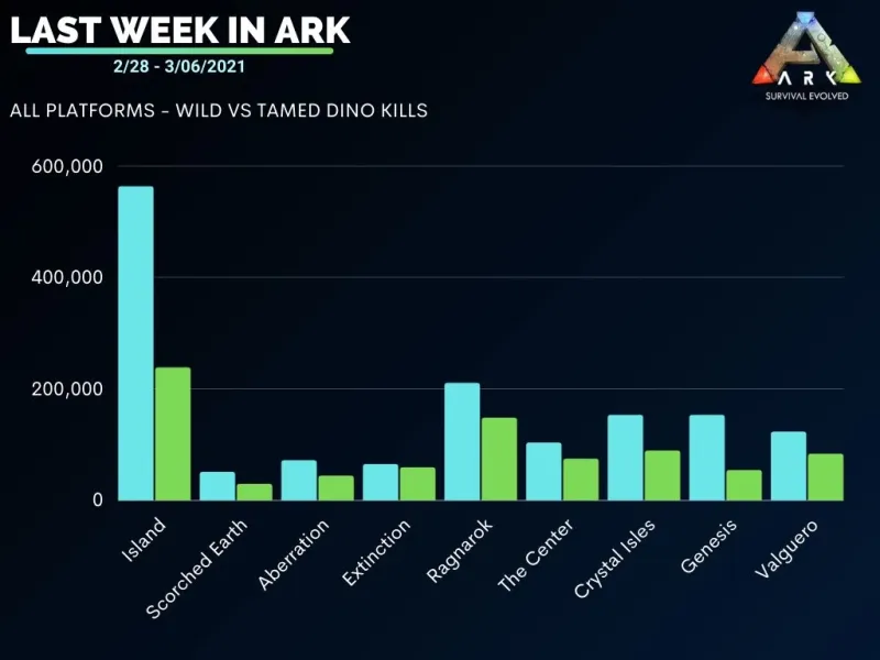 На прошлой неделе в ARK мы рассматривали разницу между убийствами, совершенными прирученными существами, и убийствами, совершенными дикими существами. Остров и Бытие - вот где мы видим самые большие различия.