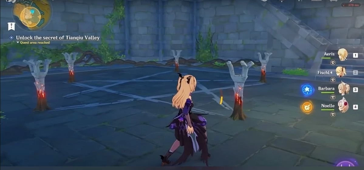 Сама долина Тяньцю не слишком заметна на карте. Она расположена на юго-западе в регионе Ли Юэ. Чтобы начать задание, нужно прочитать древнюю табличку, которая находится почти в самом центре долины. Найти её будет проще, если подсветить себе активные объекты.
