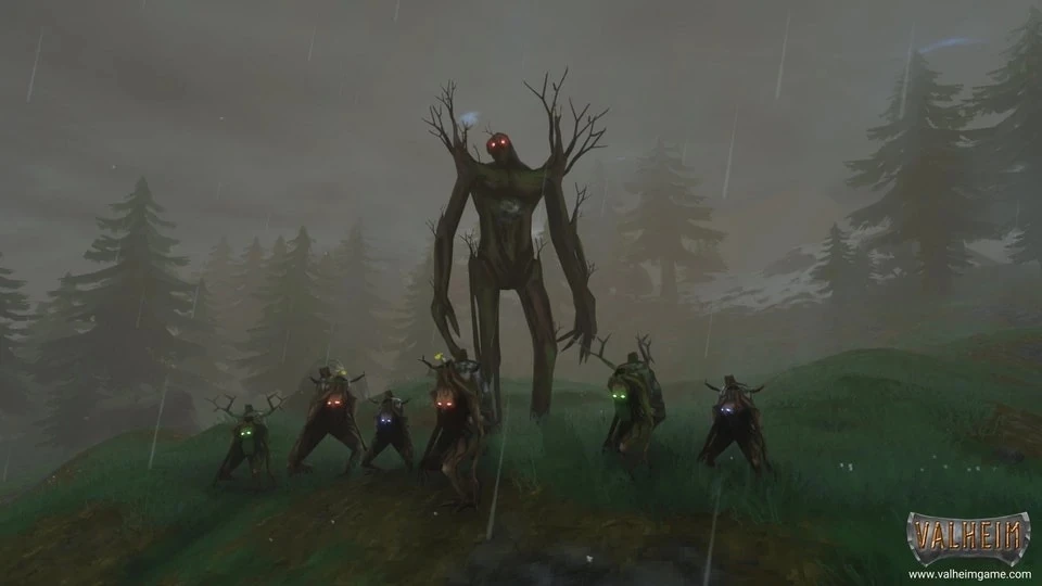 Мифическое создание в виде человекоподобного дерева - энта, его глаза горят красным светом.
