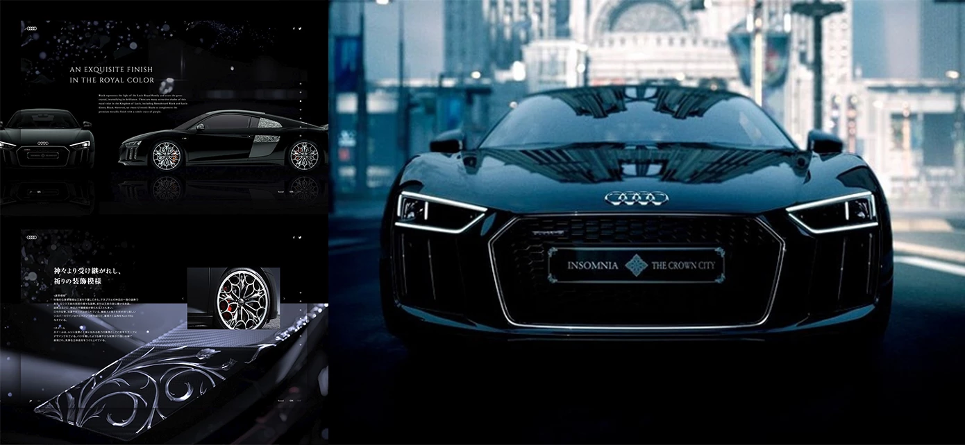 В фильме Final Fantasy XV: Kingsglaive появлялась машина Audi R8 от немецкой автомобилестроительной компании - Audi. Ее название переводится как "Звезда Люциса", эта машина подарок короля Региса для своего сына - Ноктиса.