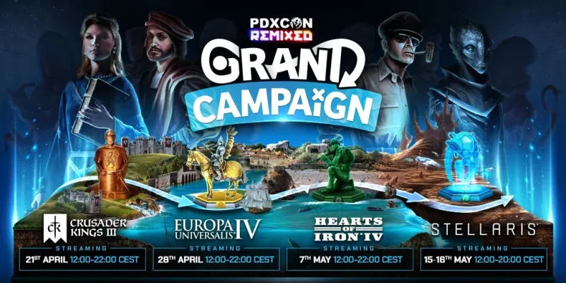 Присоединяйтесь к командам Crusader Kings III, Europa Universalis IV, Hearts of Iron IV и Stellaris на крупнейшем мероприятии по эту сторону PDXCON Remixed. В сказке, которая перенесет нас из 867 года нашей эры в далекое будущее, вы, Сообщество Парадоксов, будете иметь решающее слово в отношении разворачивающихся событий!