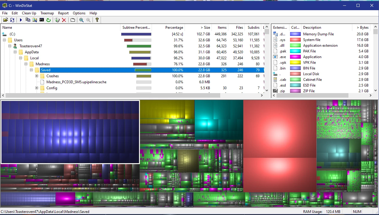 Проблема была обнаружена пользователем Reddit Toasteroven47. Когда он заметил, что его SSD не хватает места, он решил проверить, что его вызвало. Он использовал WinDirStat, программу, которая позволяет нам анализировать использование диска. Он нашел причину проблемы среди файлов, связанных с Outriders. В частности, это были сообщения об ошибках, сгенерированные Unreal Engine.