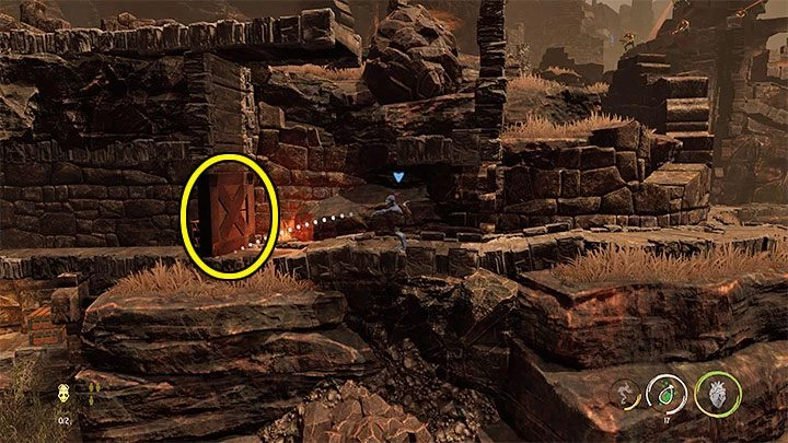 Продолжайте подниматься. Путь приведет вас к входу в шахту, показанному на рисунке. Вам нужно исследовать это место.