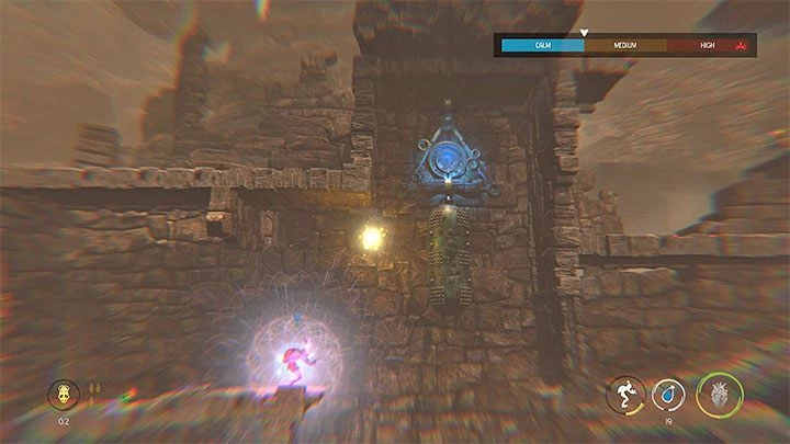 Выйдя на улицу, доберитесь до лестниц и используйте их, чтобы добраться до более высокой полки. Вы можете использовать владение на всех ближайших врагов. Это позволит дотянуться до рычага и потянуть его. Вернитесь налево и пойте так, чтобы Шар Ци достиг колокола и открыл проход.