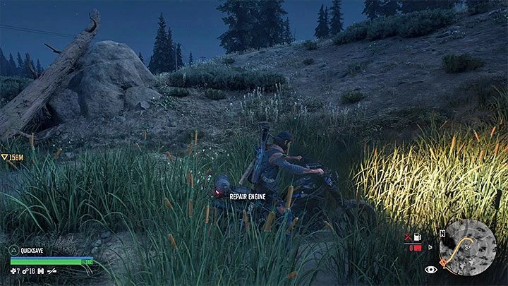 Дикон может ремонтировать байк с самого начала игры. Вы должны сесть рядом с двигателем и удерживать кнопку с кружком . При ремонте мотоциклов используется металлолом , который приходится искать почти все время. Игра не заставляет вас ремонтировать свой байк на 100% от его прочности. Вы можете сделать небольшой ремонт и путешествовать на слегка поврежденном мотоцикле.