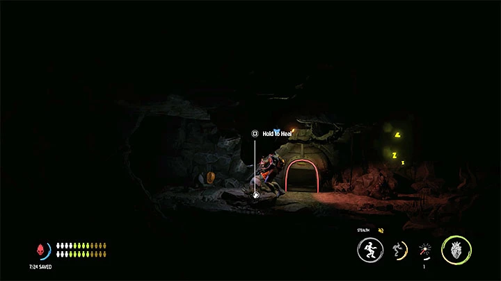 Два мудокона на скриншотах выше - самые проблемные. Они «прячутся» за препятствиями, из-за чего их трудно увидеть. Единственная подсказка, которую мы получаем, - это подсказка, которая появляется на экране, позволяющая нам исцелить данного мудокона.